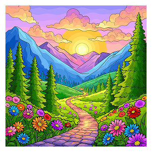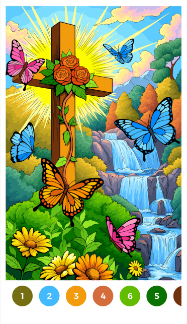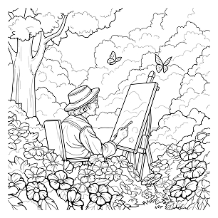 On the grassy lawn before the church, Barbara paints scenes inspired by her coloring game, blending passion and prayer into one serene offering.