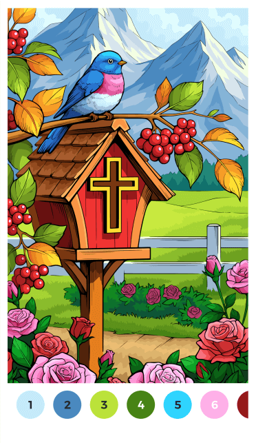 On the grassy lawn before the church, Barbara paints scenes inspired by her coloring game, blending passion and prayer into one serene offering.